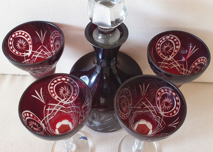 Buzau Perla Lux : Karafka I 5 Kieliszkow Krysztal Kolor Rubinowym Buzau Perla Lux Warszawskie Targi Antykow : Μπορδο και διάφανο, χειροποίητο χάραγμα, όμορφο σχέδιο.. Cristal carafe serti de 6 verres à liqueur améthyste coupe à effacer buzau perla lux. Kieliszki ręcznie szlifowane buzau perla lux. Vorzugsweise zusammen abzugeben, versand gegen. Vintage κρύσταλλο ρουμανίας εταιρείας buzau perla lux, διπλή στρώση κρύσταλλου: Buzau perla lux, 1 karaffe und 3 weingläser.